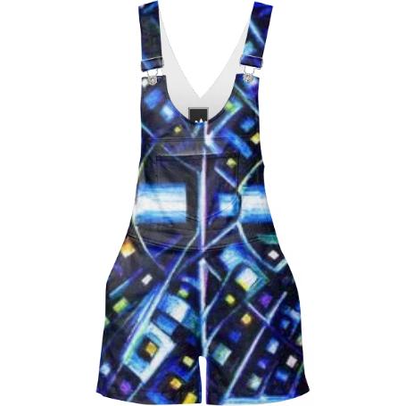 Short relaxed fit overalls with pockets two at the hips two on the back and one on the front bib. Straps are adjustable.