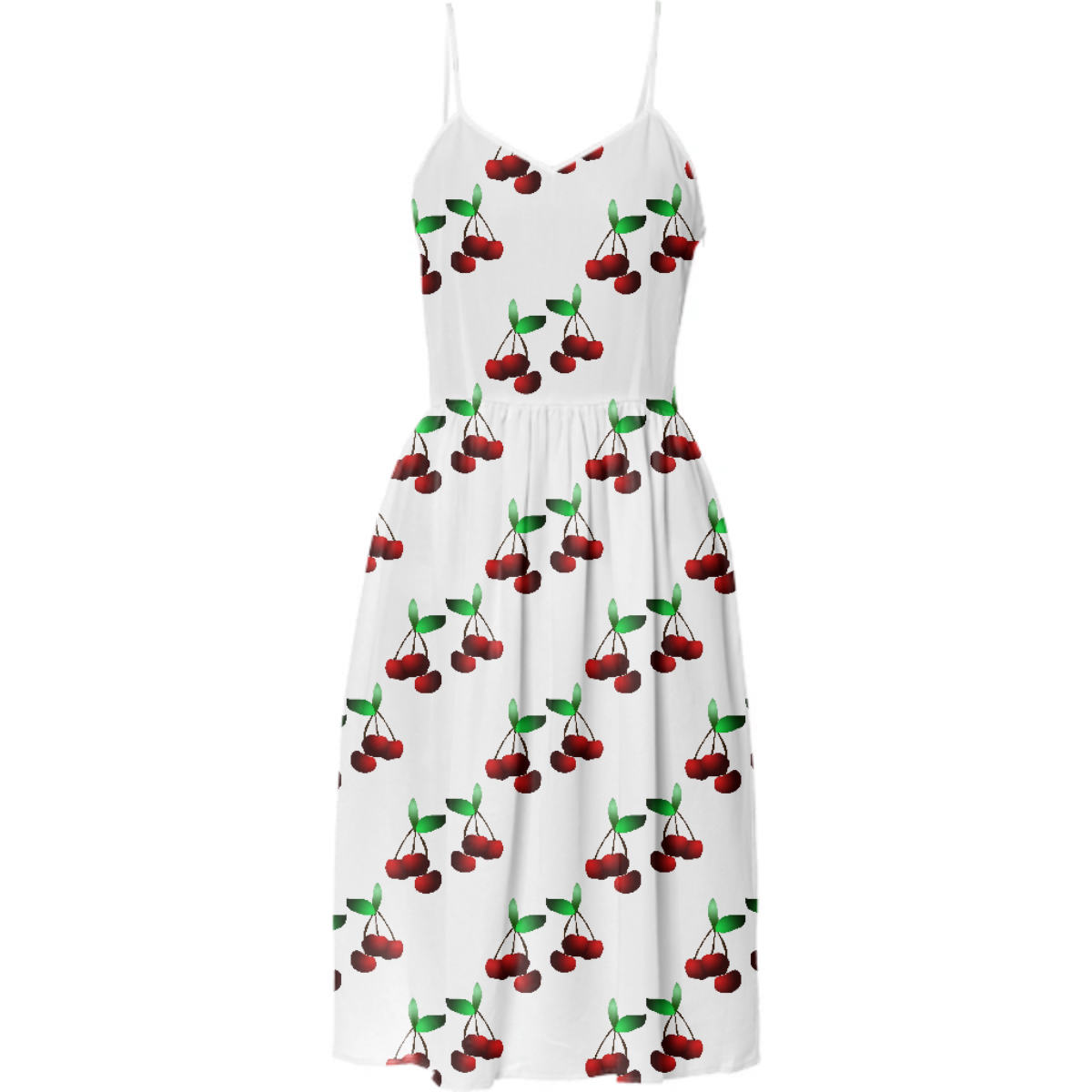 Knee length v-neckline dress with adjustable spaghetti straps shirred waist and invisible side seam zipper.