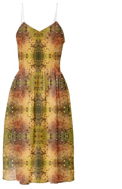 PSYCHEDELIC ABSTRACT ART on Summer Dress Vision of an Alien World with Cracks and Craters