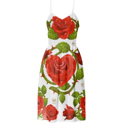 Knee length v-neckline dress with adjustable spaghetti straps shirred waist and invisible side seam zipper.