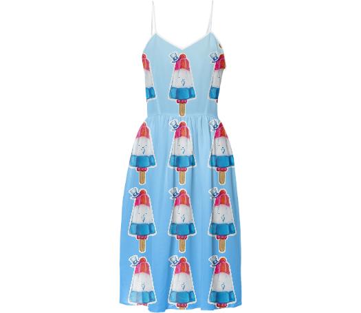 Knee length v-neckline dress with adjustable spaghetti straps shirred waist and invisible side seam zipper.