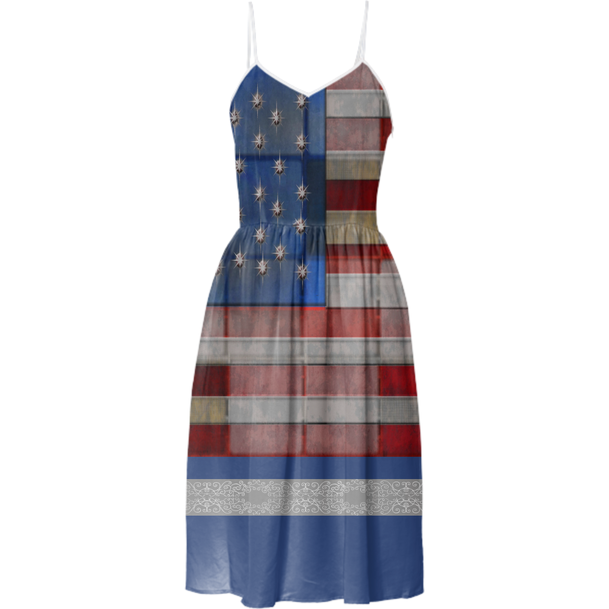 Knee length v-neckline dress with adjustable spaghetti straps shirred waist and invisible side seam zipper.