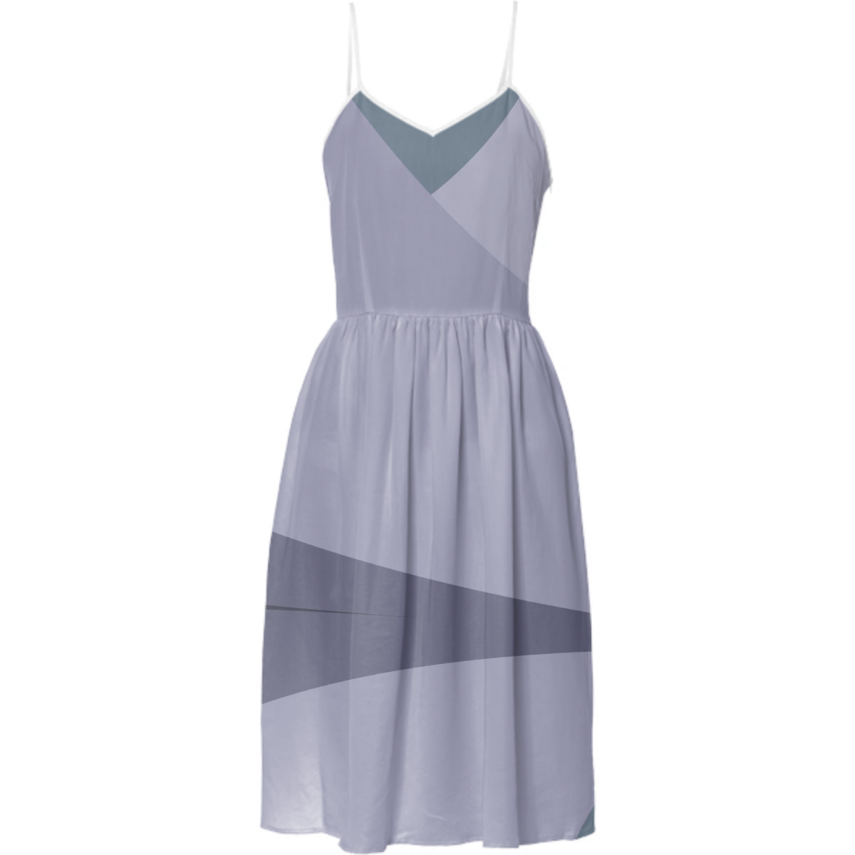 Knee length v-neckline dress with adjustable spaghetti straps shirred waist and invisible side seam zipper.