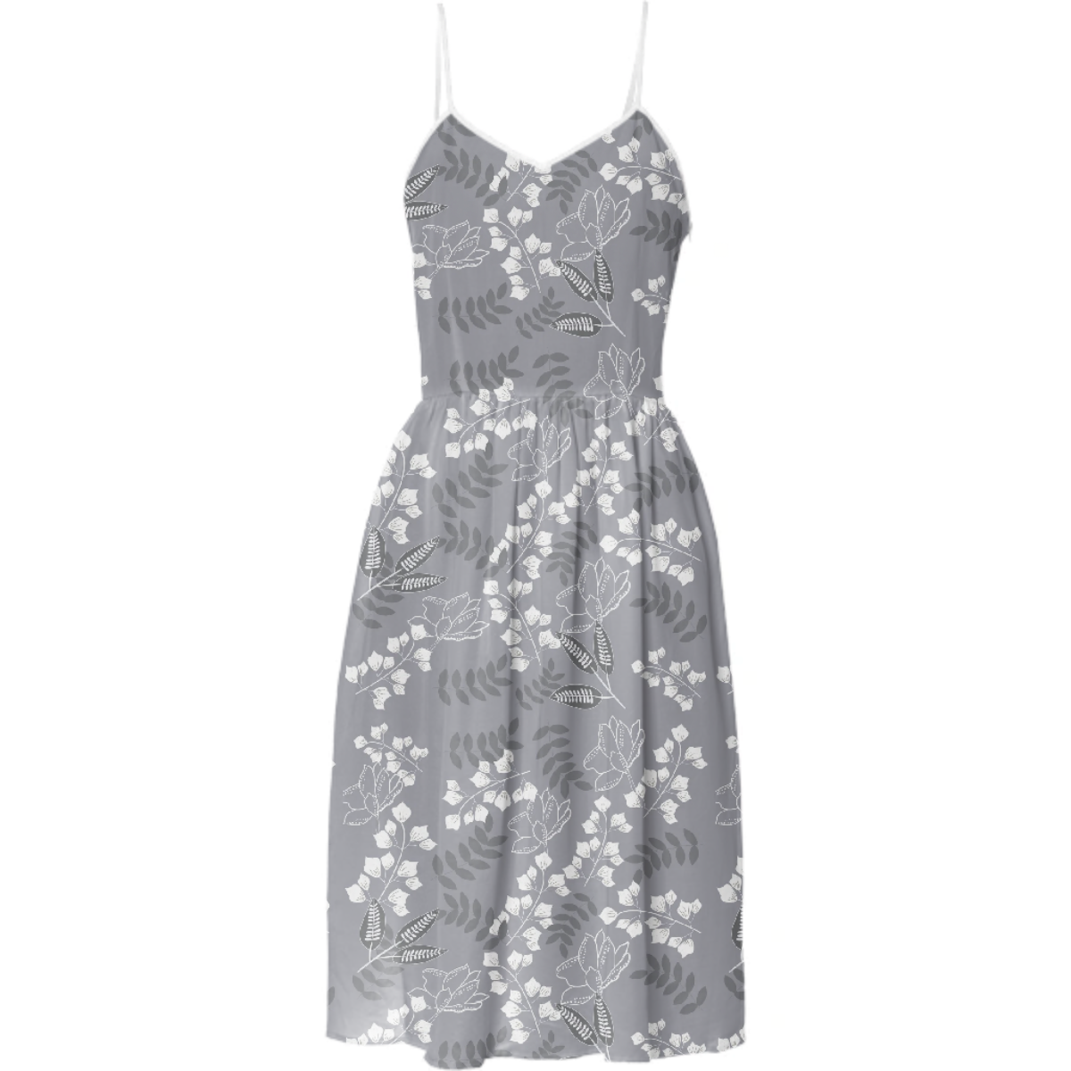 Knee length v-neckline dress with adjustable spaghetti straps shirred waist and invisible side seam zipper.