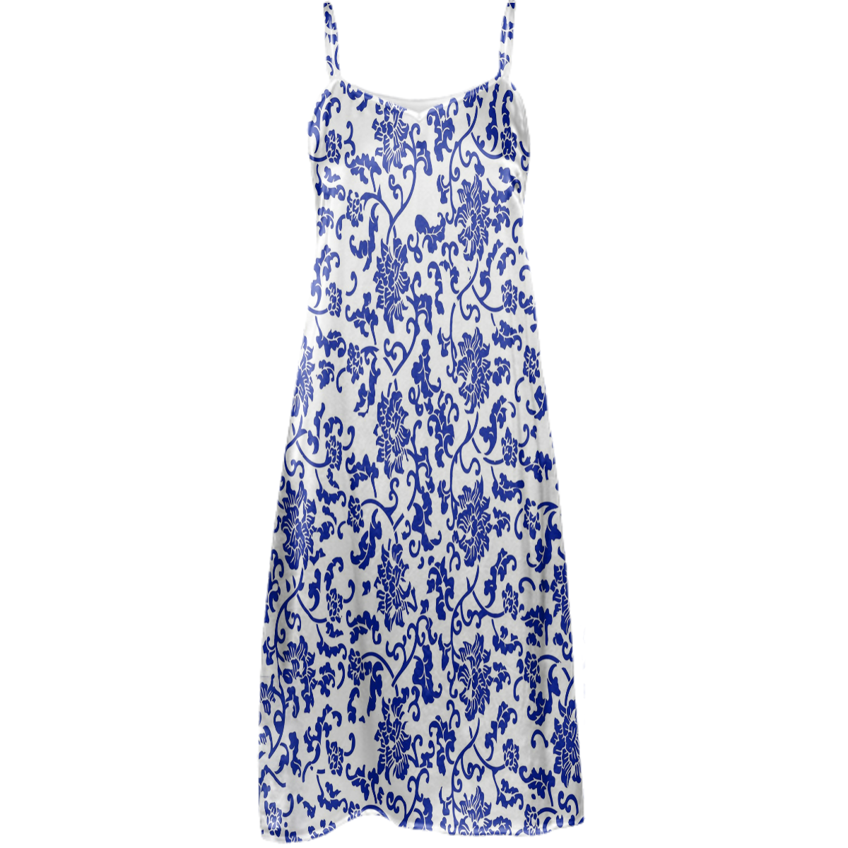 Loose flowy slip dress with adjustable spaghetti straps and 4 inch side slits.
