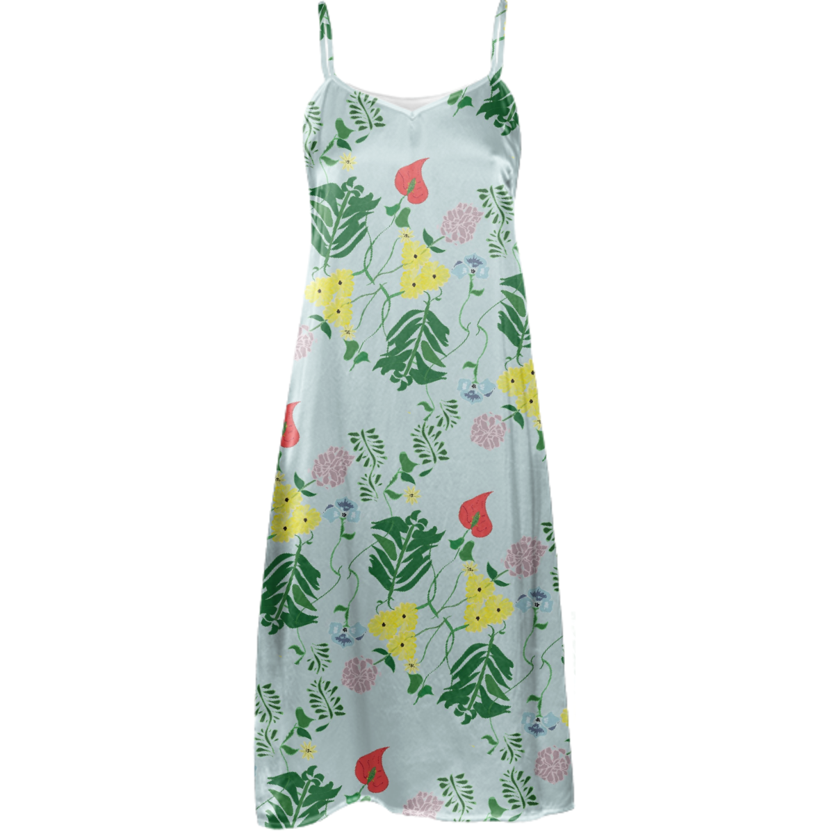 Loose flowy slip dress with adjustable spaghetti straps and 4 inch side slits.