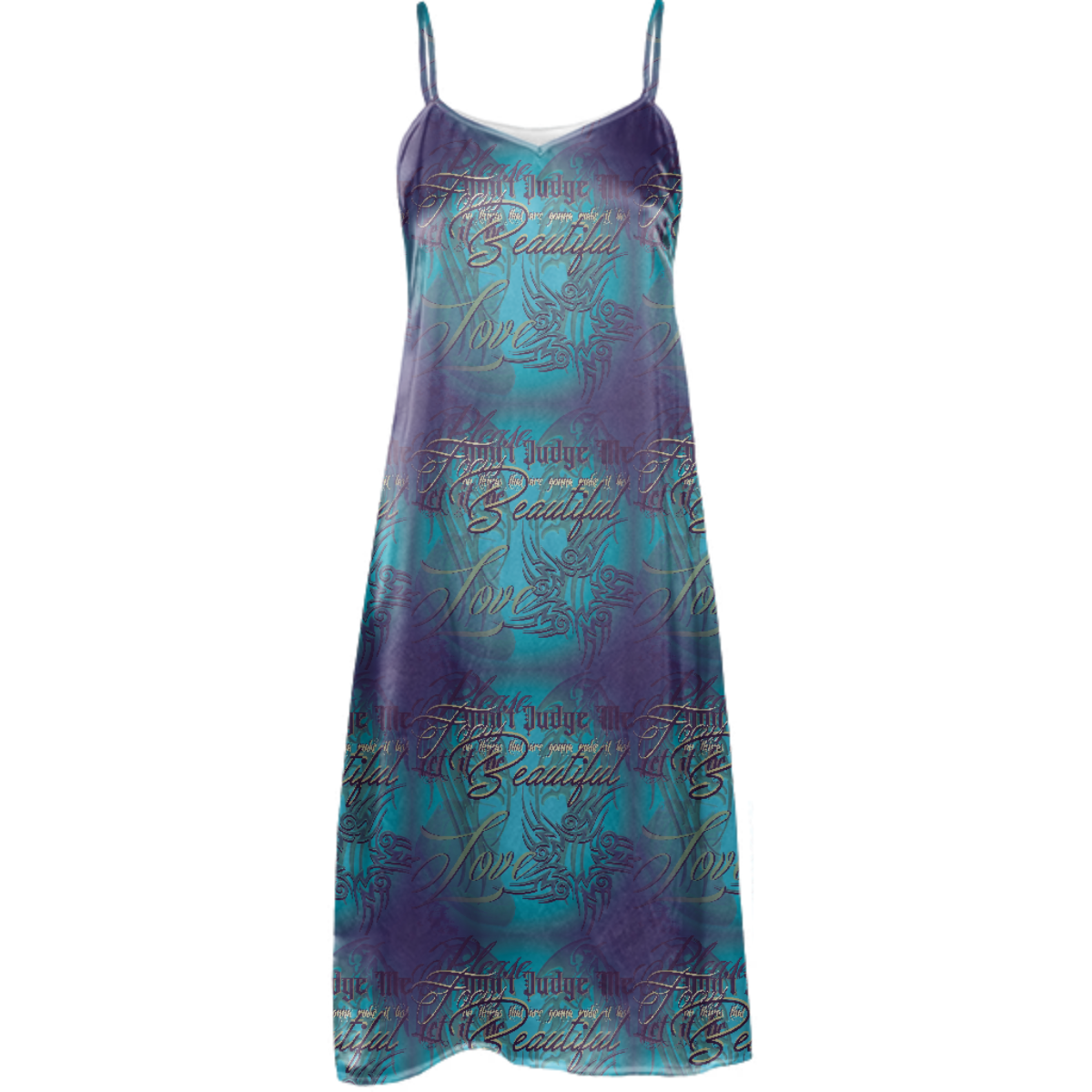 Loose flowy slip dress with adjustable spaghetti straps and 4 inch side slits.