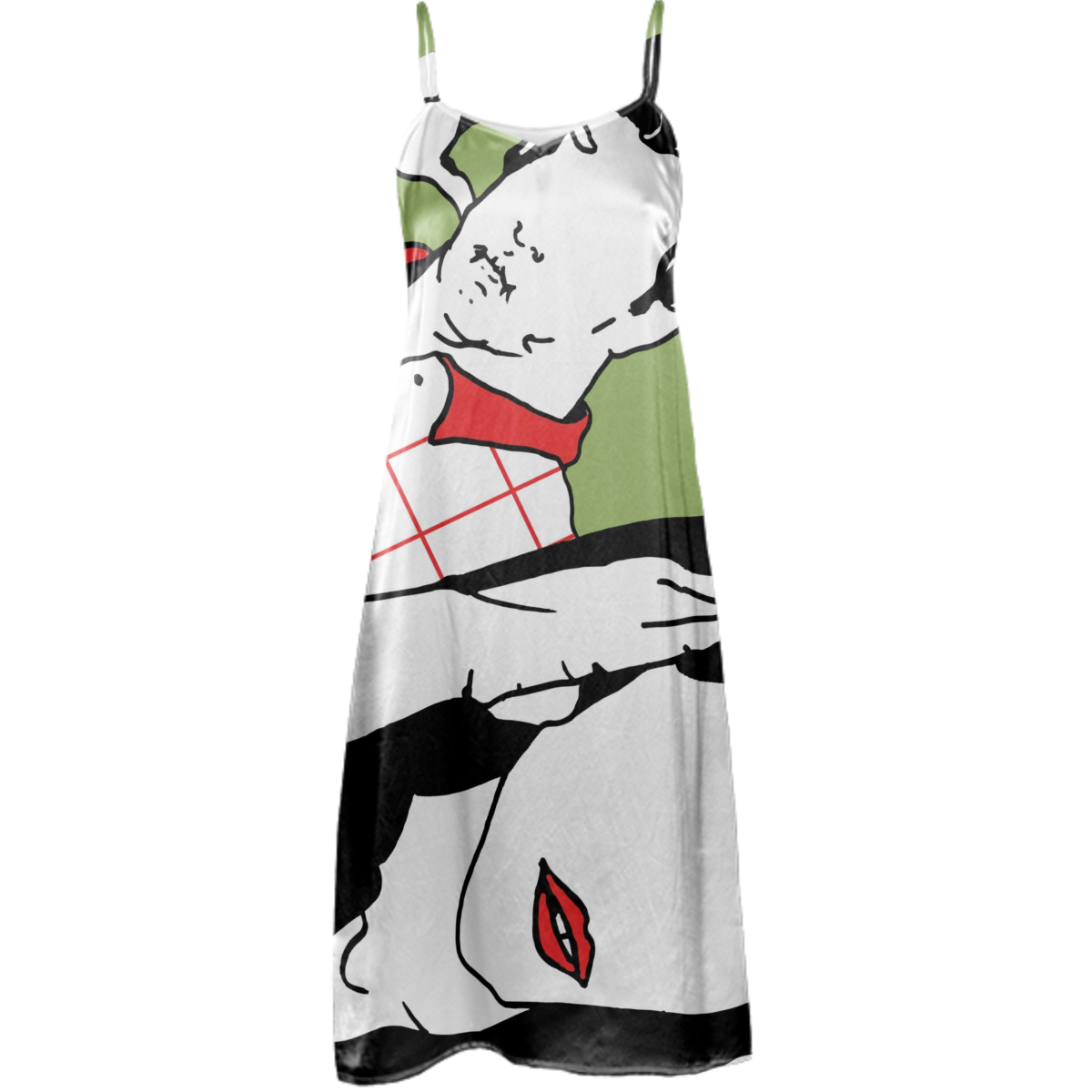 Loose flowy slip dress with adjustable spaghetti straps and 4 inch side slits.