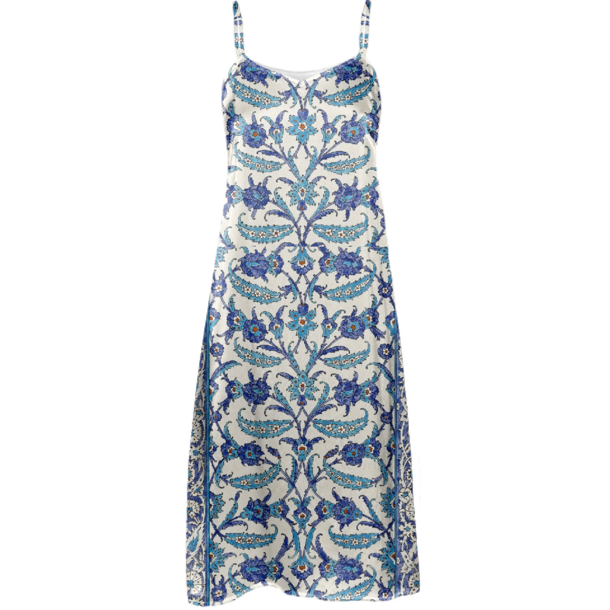 Loose flowy slip dress with adjustable spaghetti straps and 4 inch side slits.