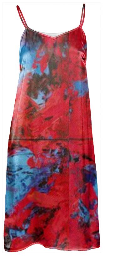 Loose flowy slip dress with adjustable spaghetti straps and 4 inch side slits.