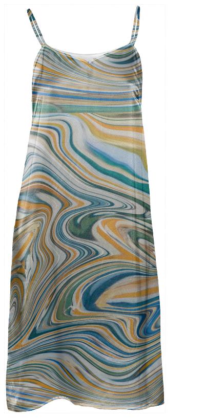 Loose flowy slip dress with adjustable spaghetti straps and 4 inch side slits.