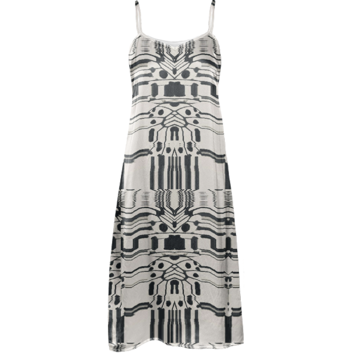 Loose flowy slip dress with adjustable spaghetti straps and 4 inch side slits.