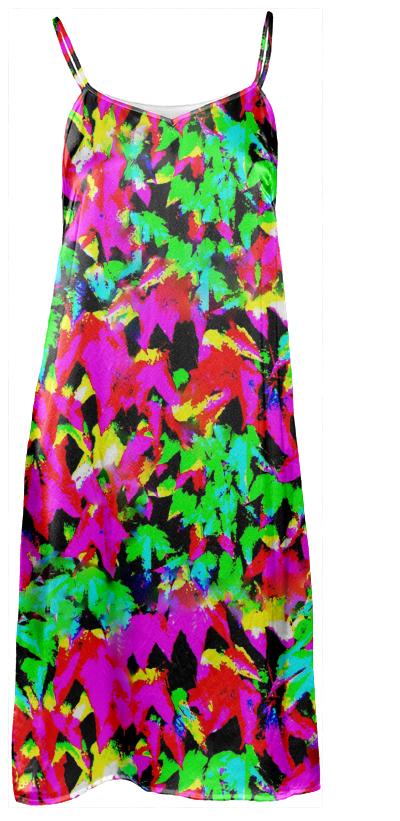 Loose flowy slip dress with adjustable spaghetti straps and 4 inch side slits.