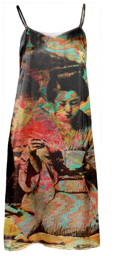 Loose flowy slip dress with adjustable spaghetti straps and 4 inch side slits.