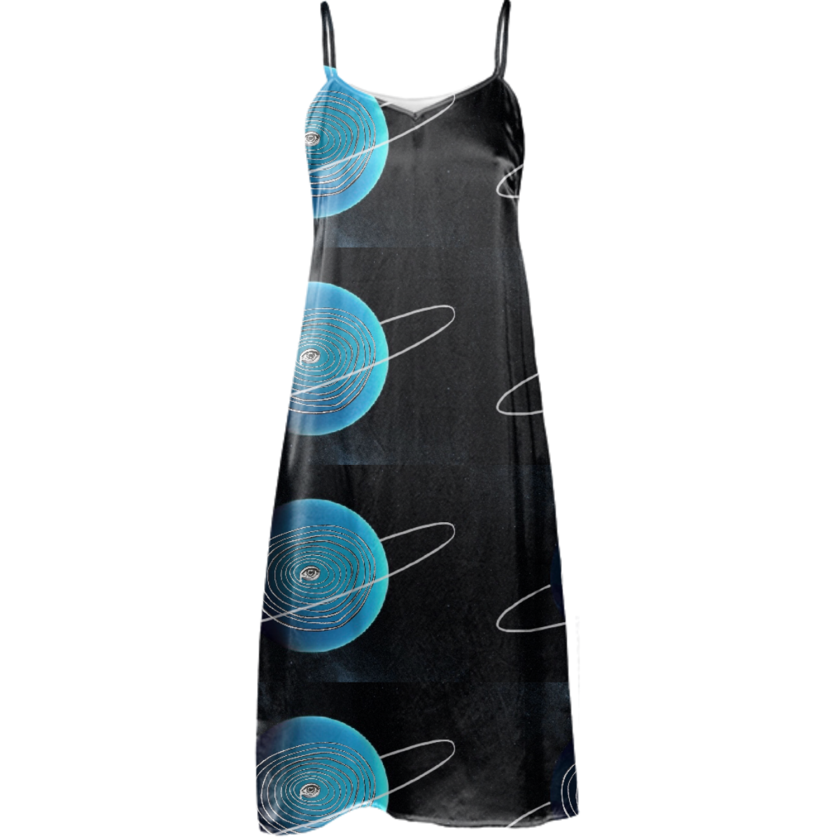 Loose flowy slip dress with adjustable spaghetti straps and 4 inch side slits.