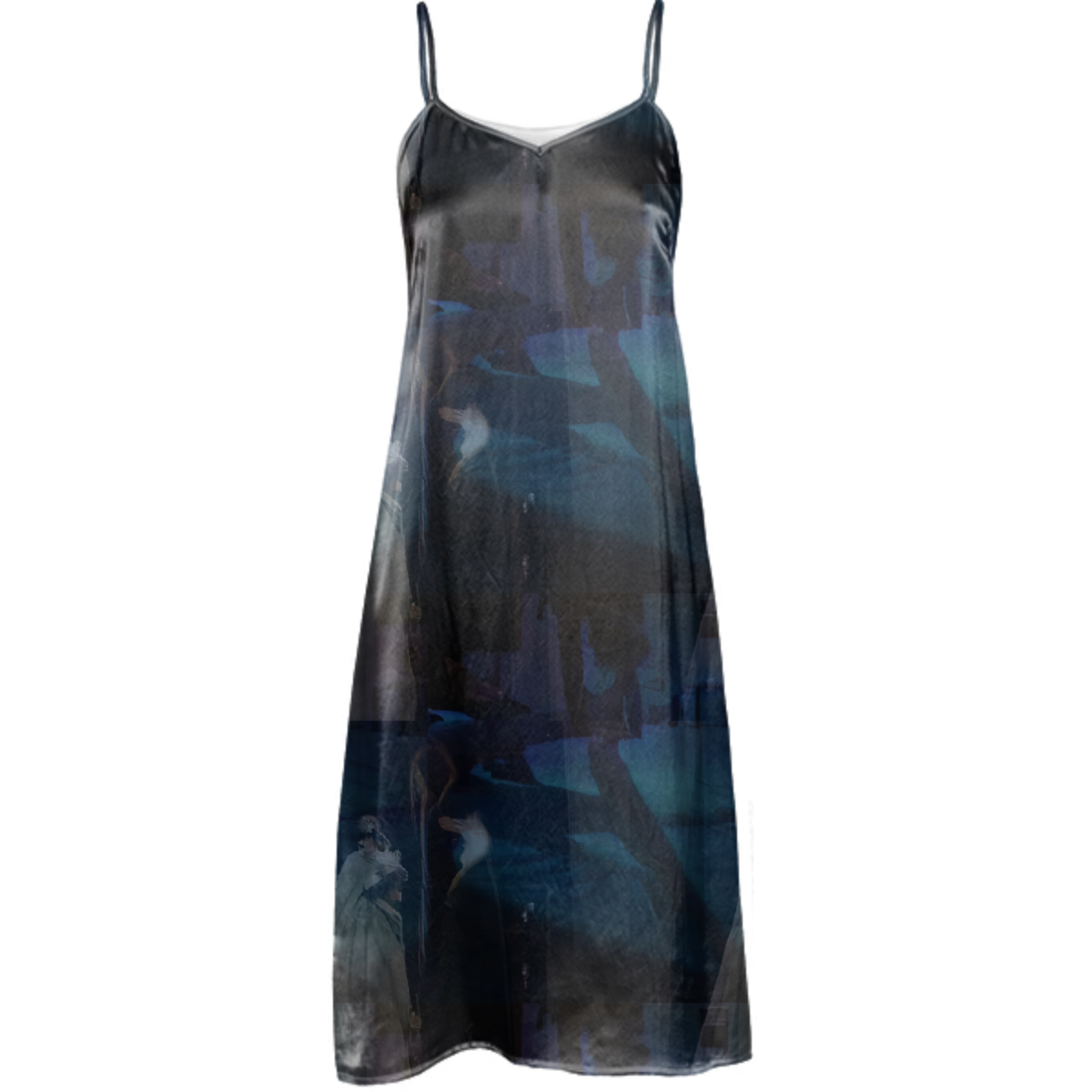 Loose flowy slip dress with adjustable spaghetti straps and 4 inch side slits.