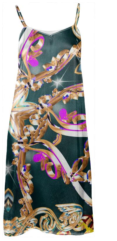Loose flowy slip dress with adjustable spaghetti straps and 4 inch side slits.