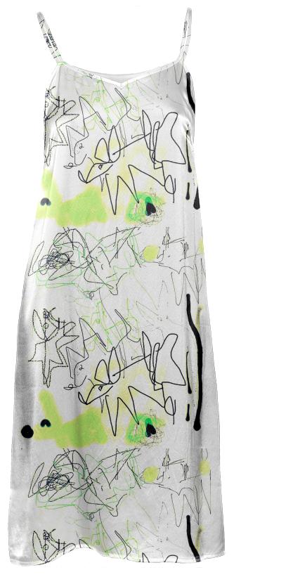 Loose flowy slip dress with adjustable spaghetti straps and 4 inch side slits.