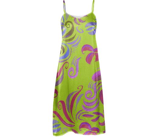 Loose flowy slip dress with adjustable spaghetti straps and 4 inch side slits.