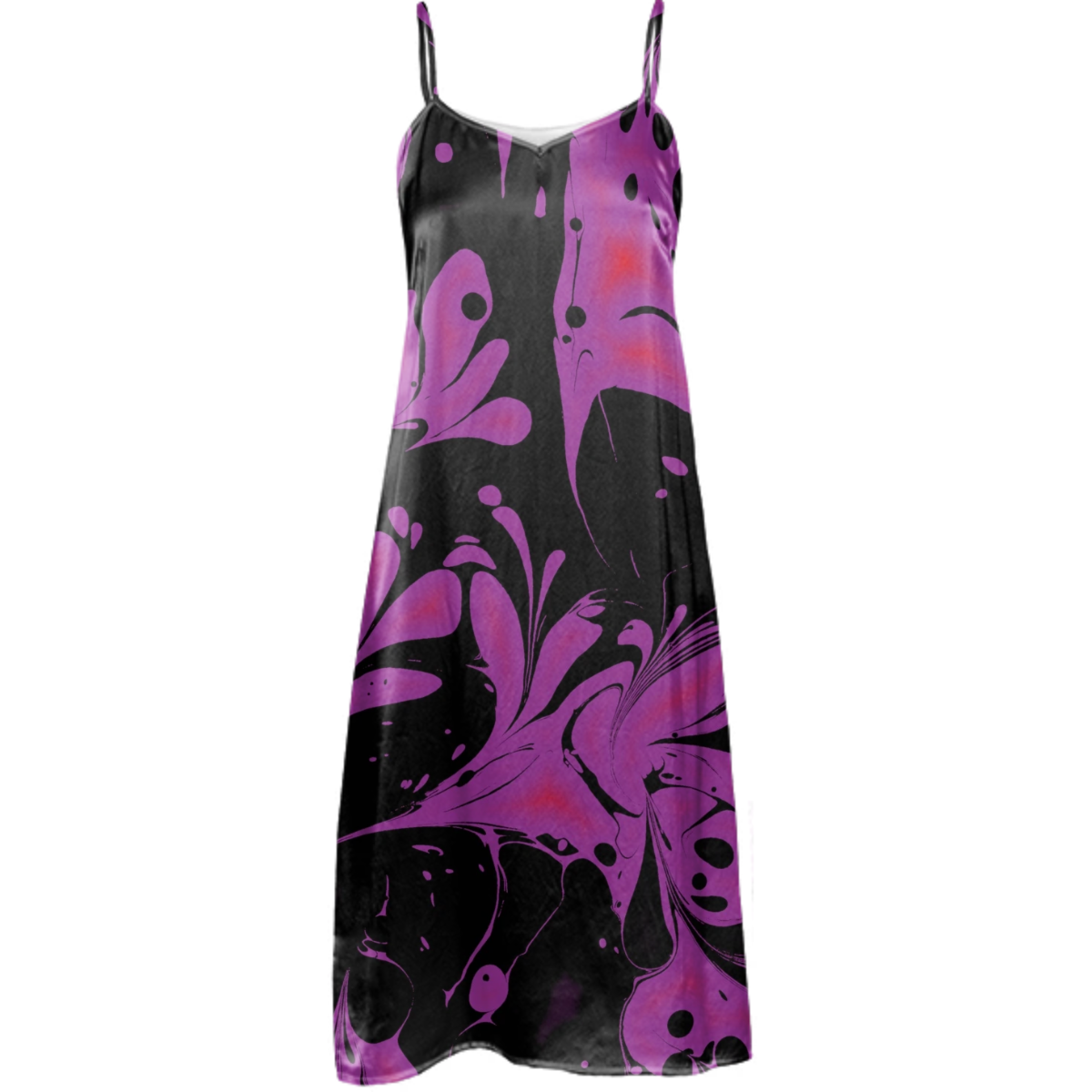 Loose flowy slip dress with adjustable spaghetti straps and 4 inch side slits.