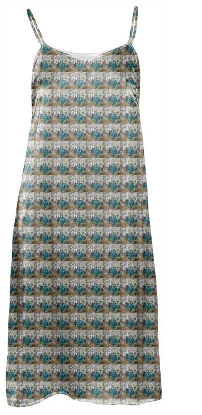 Loose flowy slip dress with adjustable spaghetti straps and 4 inch side slits.