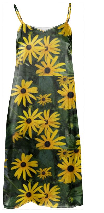 Loose flowy slip dress with adjustable spaghetti straps and 4 inch side slits.
