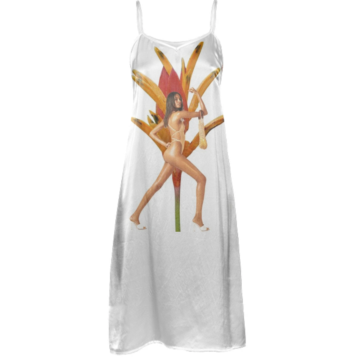 Loose flowy slip dress with adjustable spaghetti straps and 4 inch side slits.