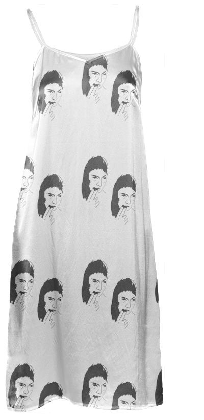 Loose flowy slip dress with adjustable spaghetti straps and 4 inch side slits.