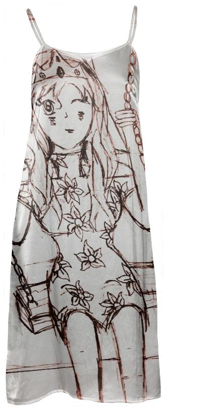 Loose flowy slip dress with adjustable spaghetti straps and 4 inch side slits.