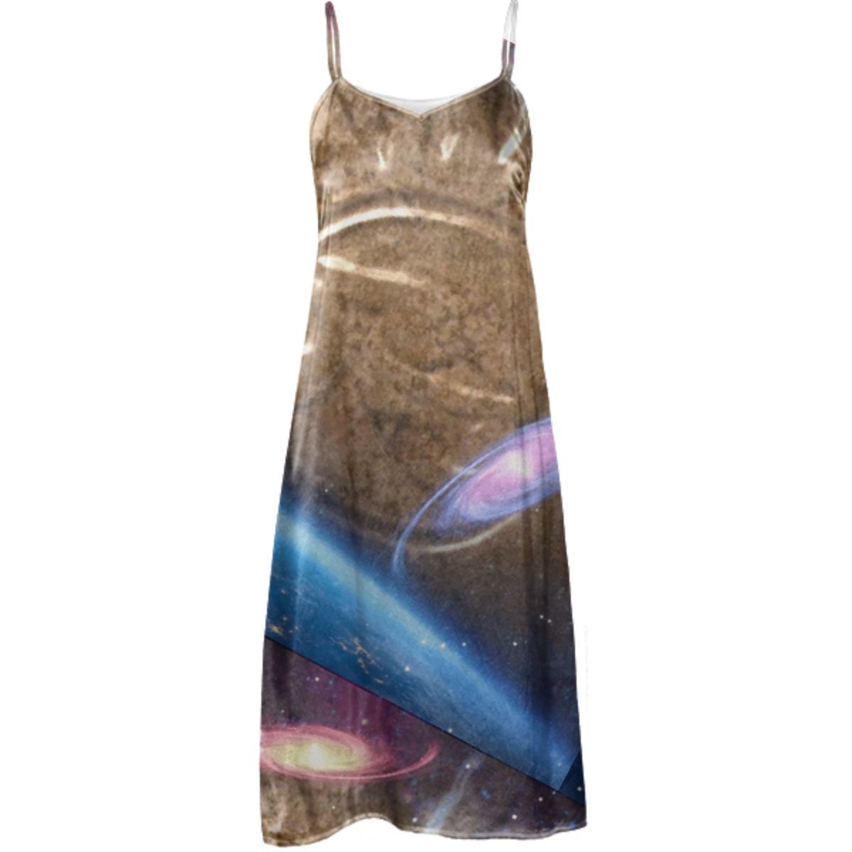 Loose flowy slip dress with adjustable spaghetti straps and 4 inch side slits.