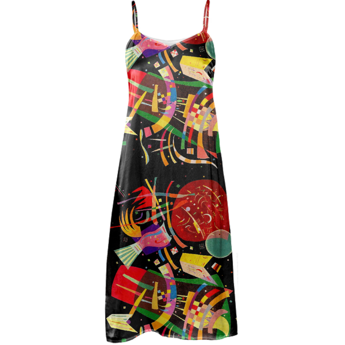 Loose flowy slip dress with adjustable spaghetti straps and 4 inch side slits.