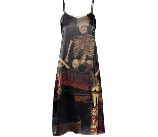 Loose flowy slip dress with adjustable spaghetti straps and 4 inch side slits.