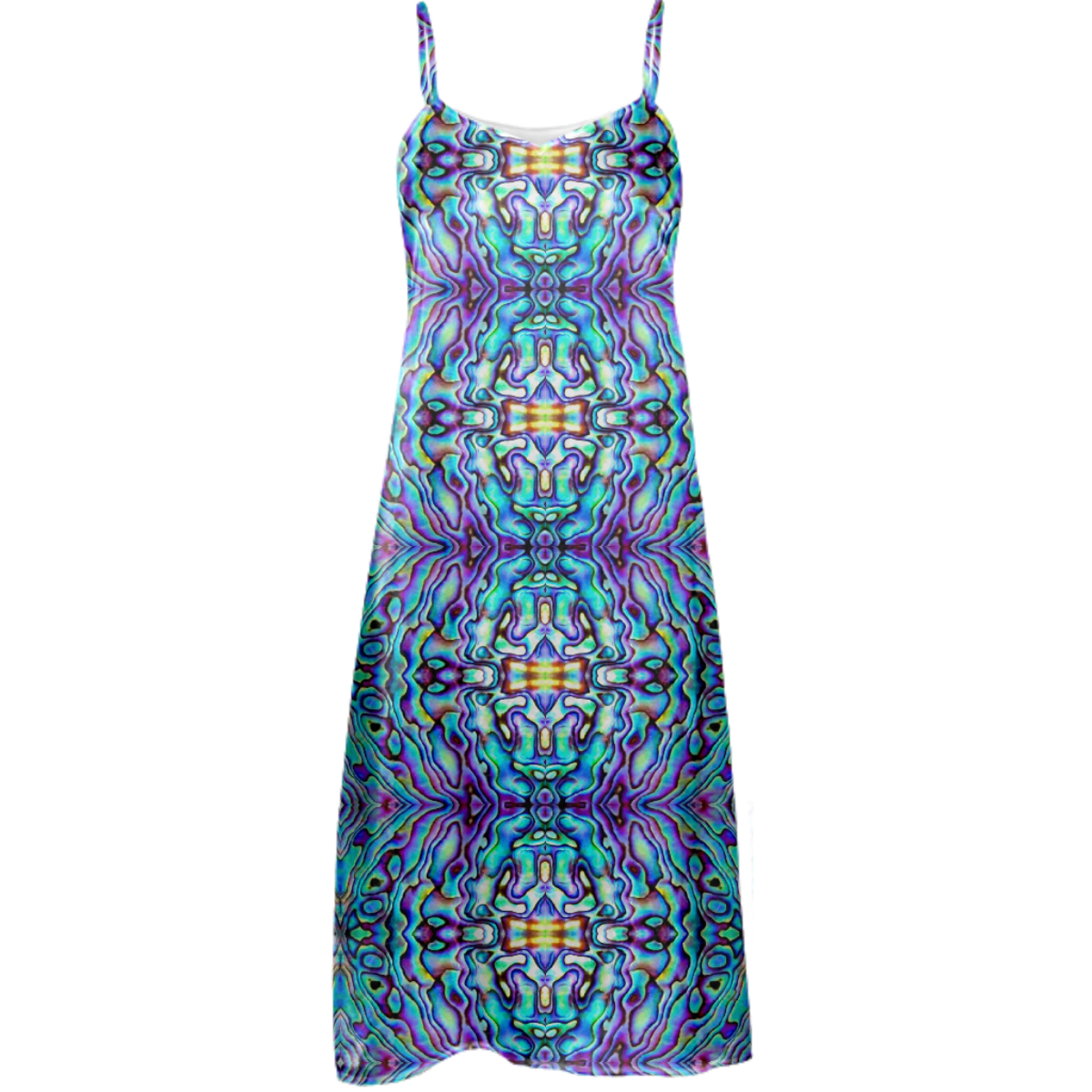 Loose flowy slip dress with adjustable spaghetti straps and 4 inch side slits.