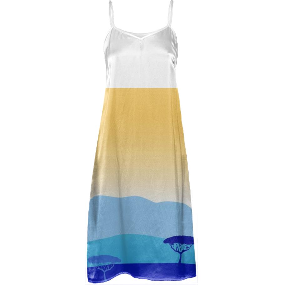 Loose flowy slip dress with adjustable spaghetti straps and 4 inch side slits.