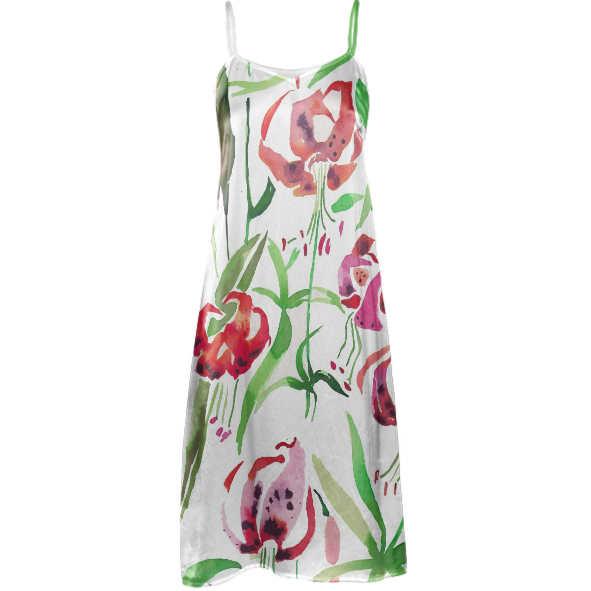 Loose flowy slip dress with adjustable spaghetti straps and 4 inch side slits.