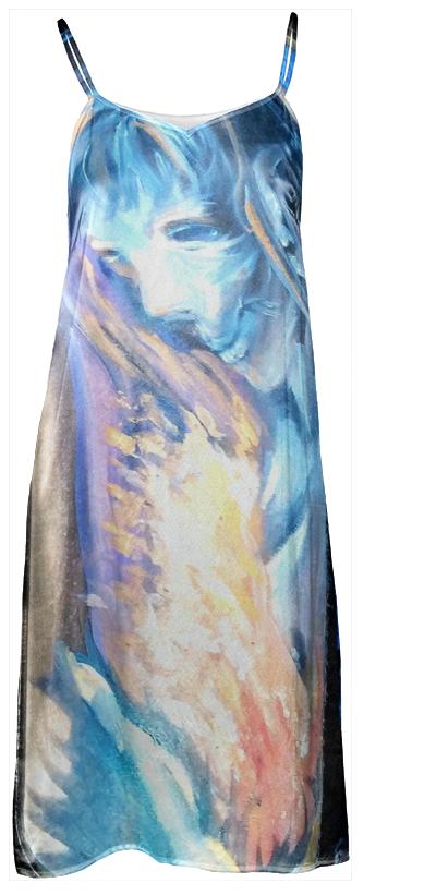 Loose flowy slip dress with adjustable spaghetti straps and 4 inch side slits.