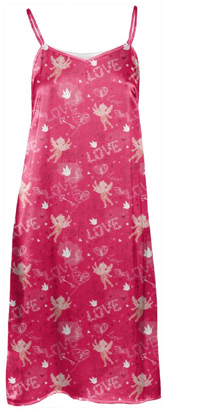 Loose flowy slip dress with adjustable spaghetti straps and 4 inch side slits.