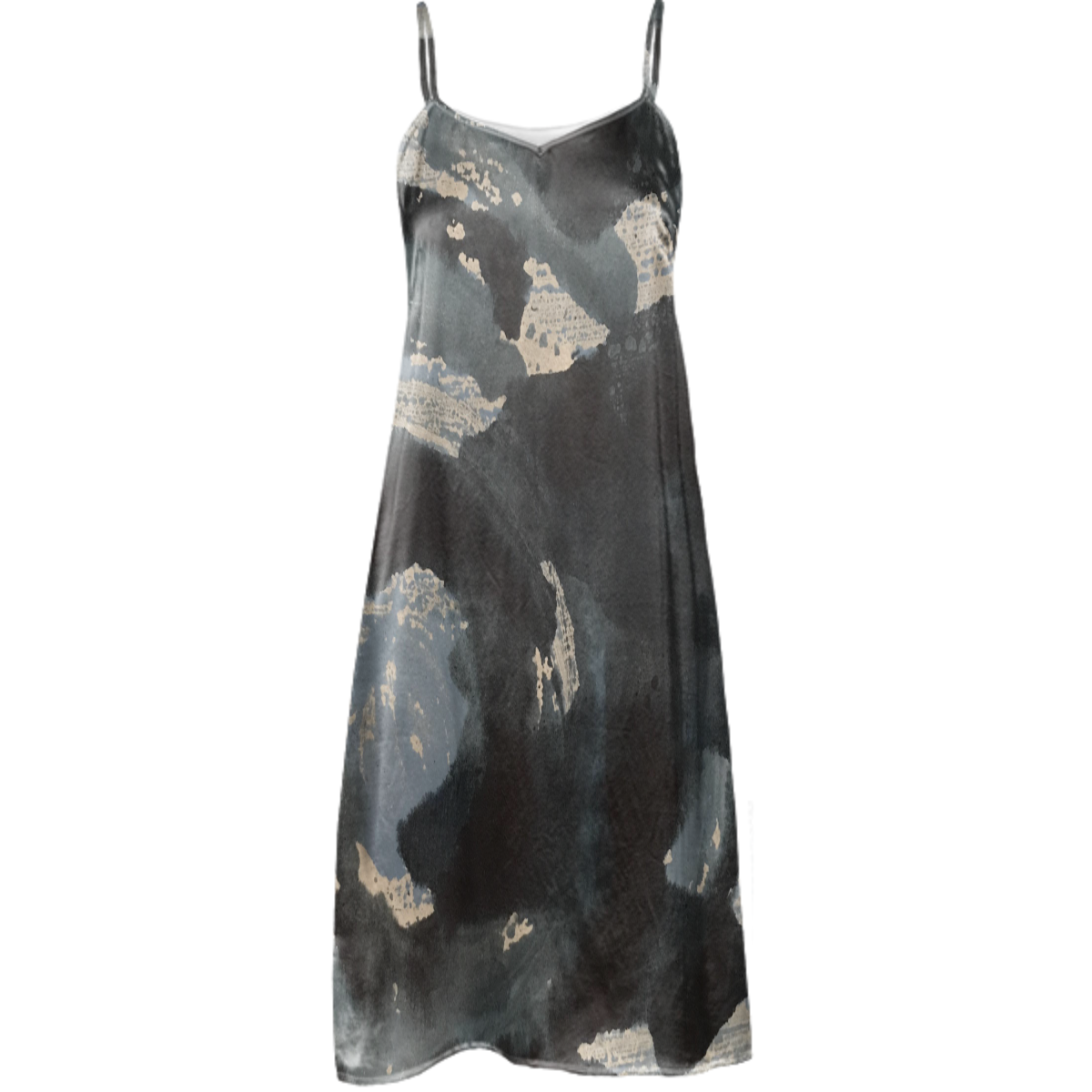 Loose flowy slip dress with adjustable spaghetti straps and 4 inch side slits.