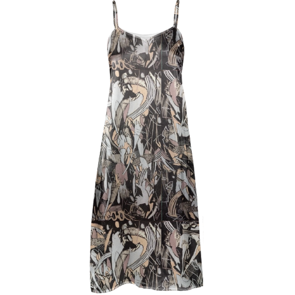 Loose flowy slip dress with adjustable spaghetti straps and 4 inch side slits.