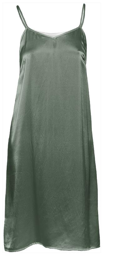 Loose flowy slip dress with adjustable spaghetti straps and 4 inch side slits.