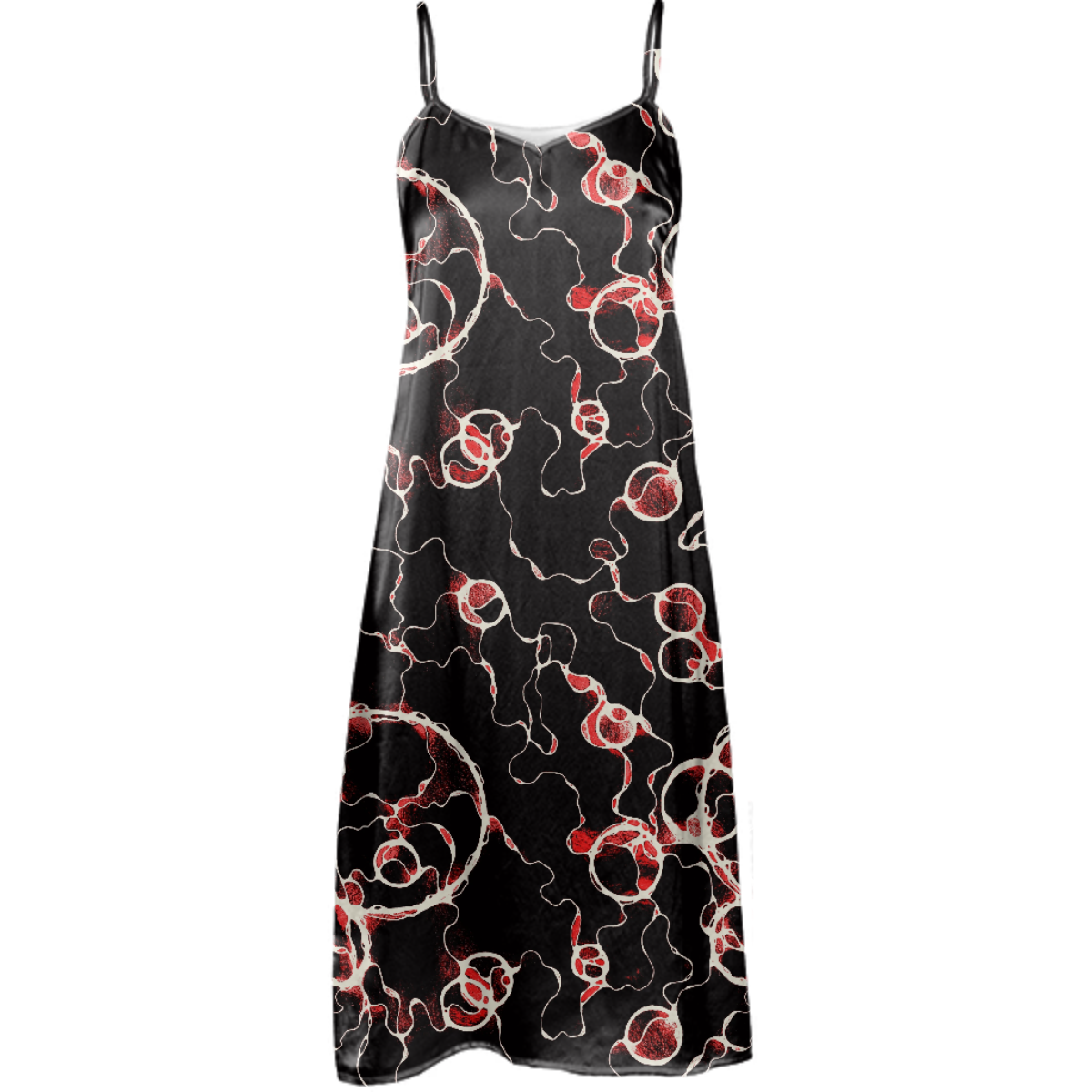 Loose flowy slip dress with adjustable spaghetti straps and 4 inch side slits.