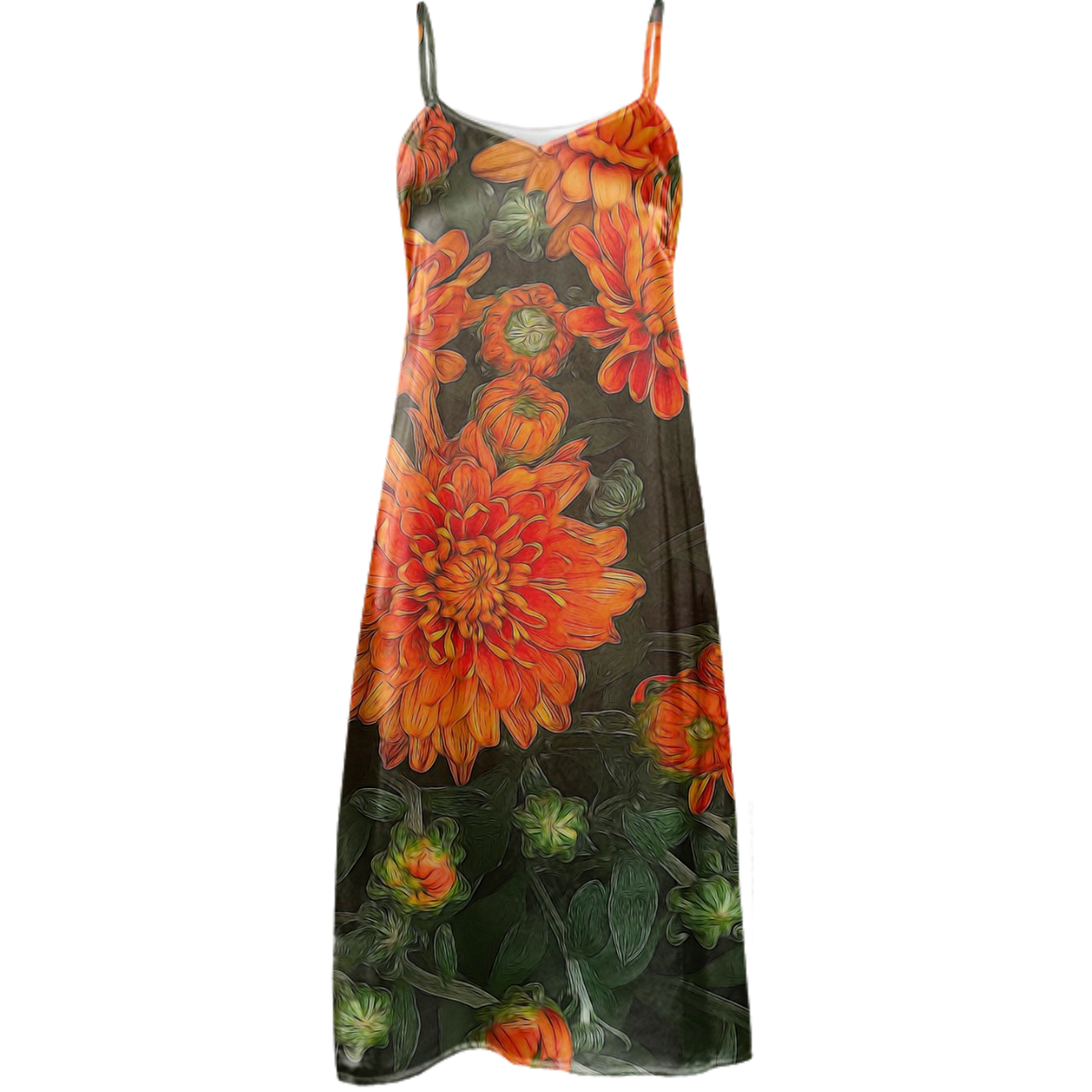Orange Fall Mums Slip Dress