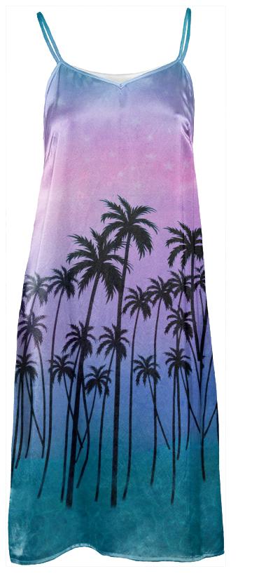 Loose flowy slip dress with adjustable spaghetti straps and 4 inch side slits.