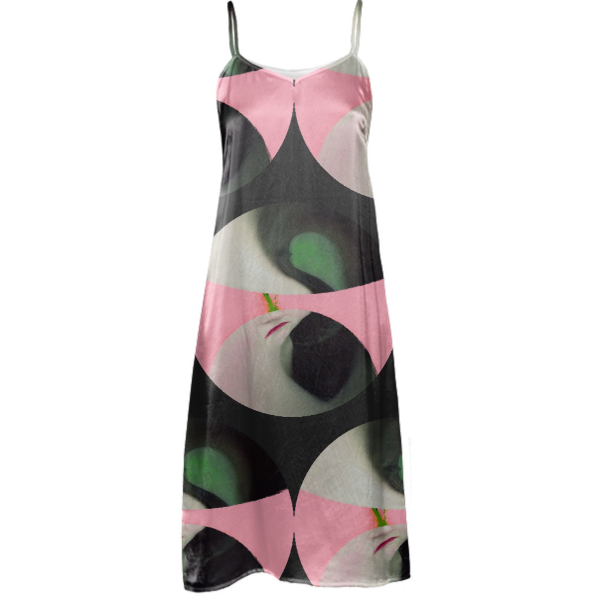 Loose flowy slip dress with adjustable spaghetti straps and 4 inch side slits.