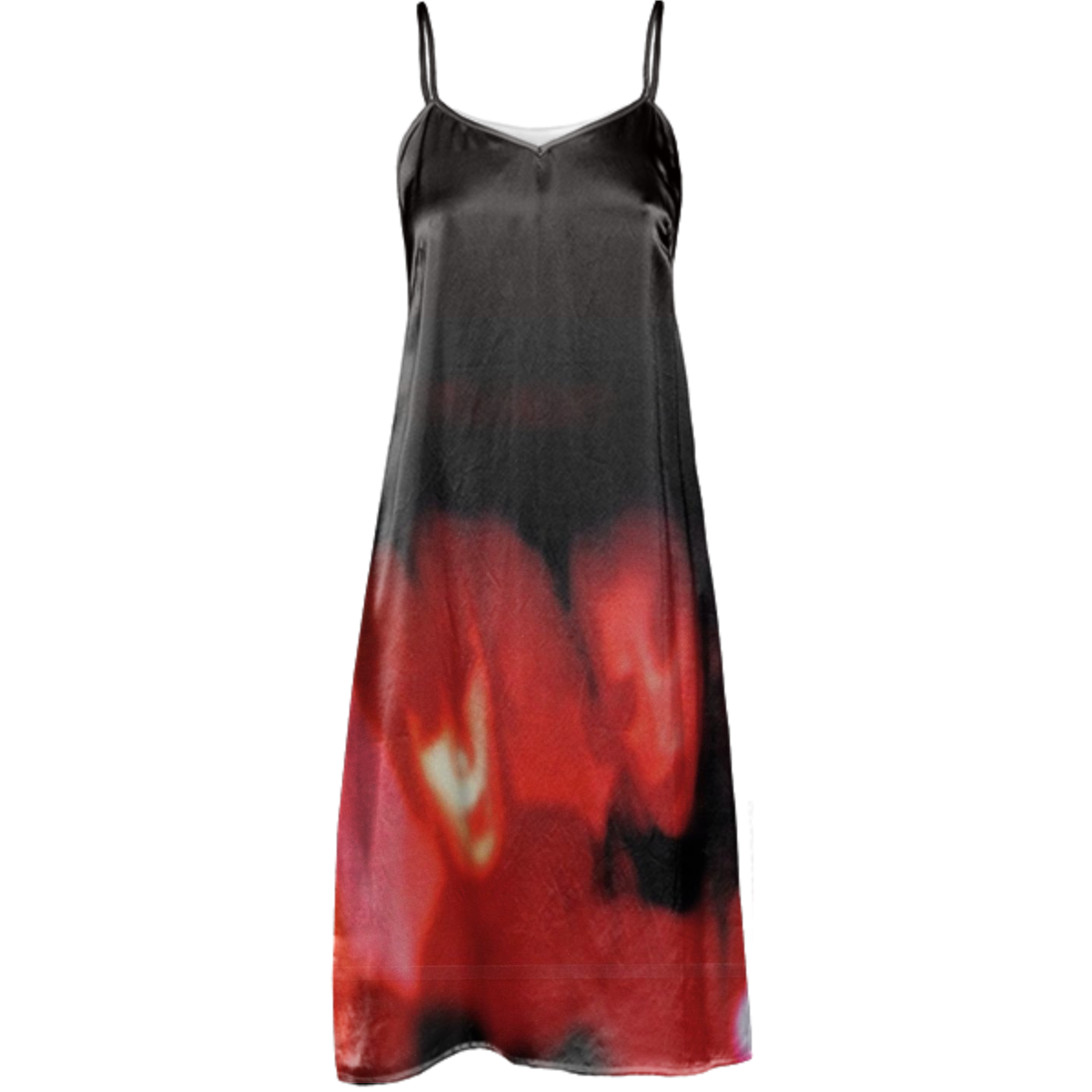 Loose flowy slip dress with adjustable spaghetti straps and 4 inch side slits.