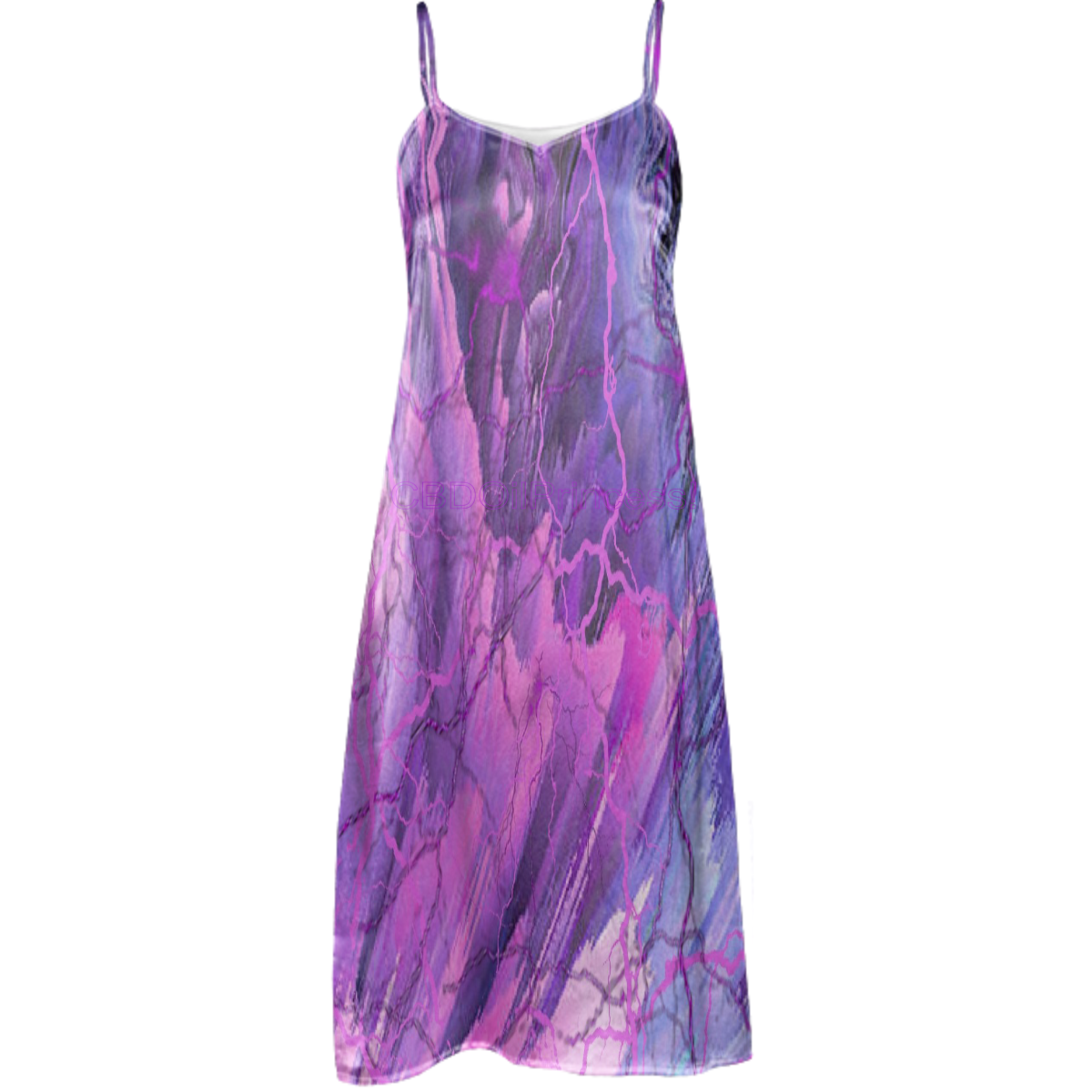 Loose flowy slip dress with adjustable spaghetti straps and 4 inch side slits.