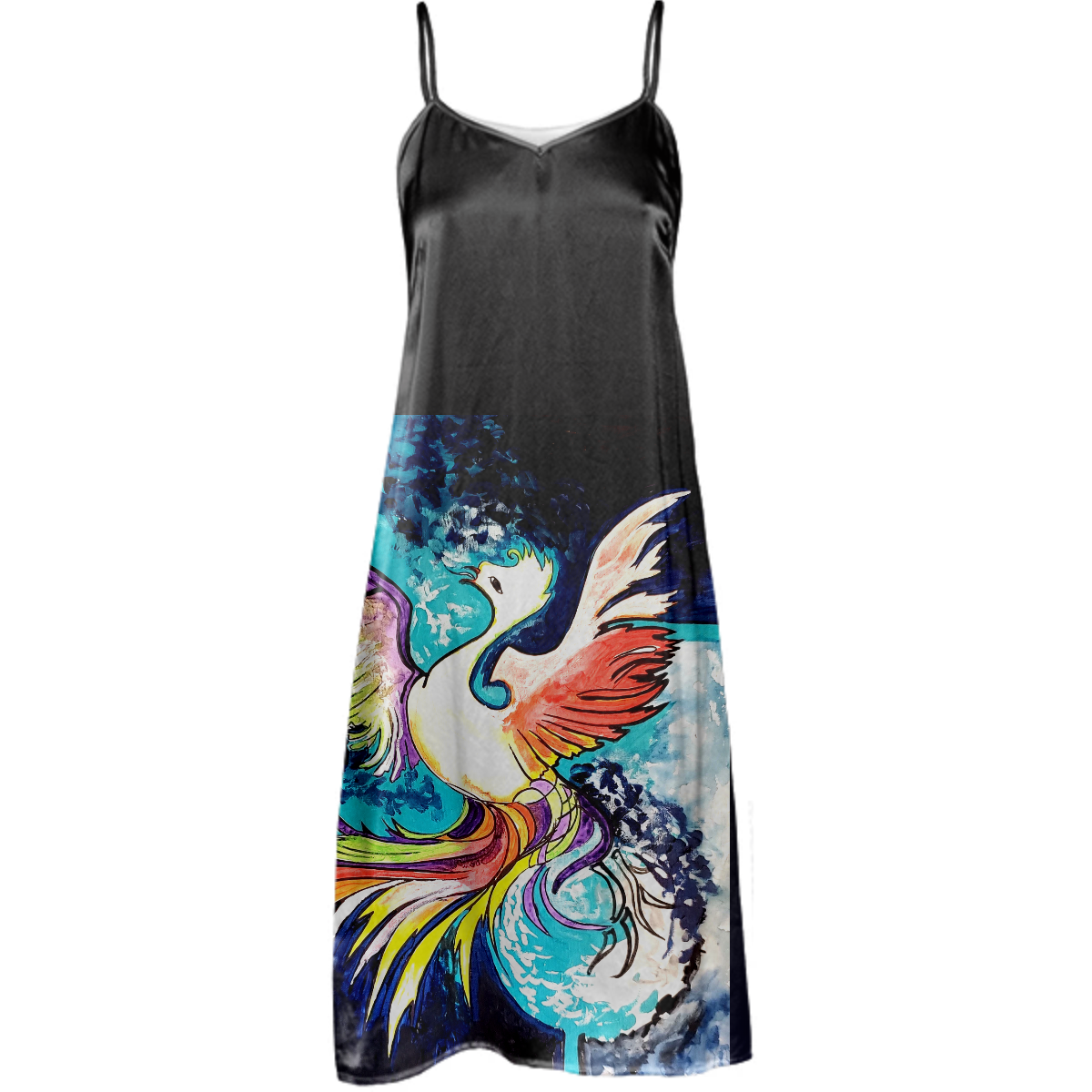 Loose flowy slip dress with adjustable spaghetti straps and 4 inch side slits.