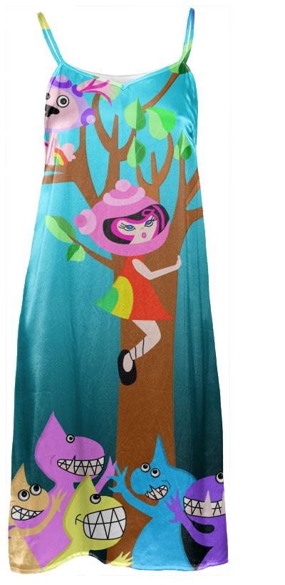 Loose flowy slip dress with adjustable spaghetti straps and 4 inch side slits.