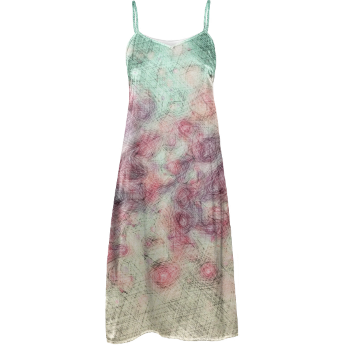 Loose flowy slip dress with adjustable spaghetti straps and 4 inch side slits.