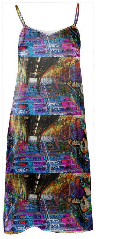 Loose flowy slip dress with adjustable spaghetti straps and 4 inch side slits.